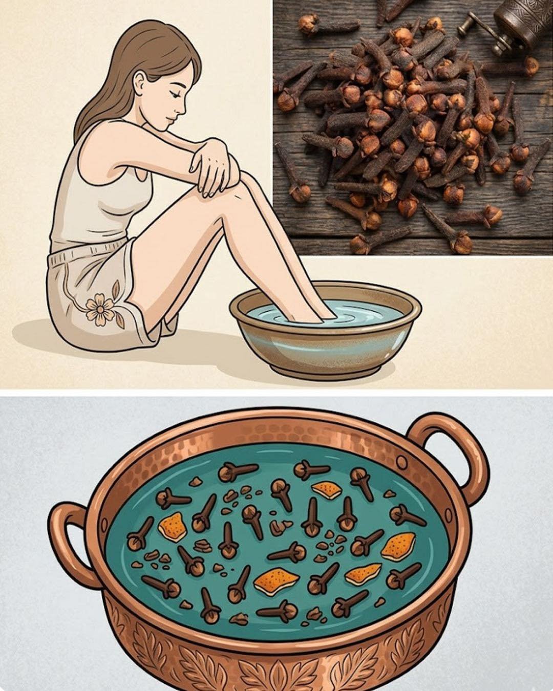 Warm clove water is commonly added to foot baths for relaxation and odor relief.