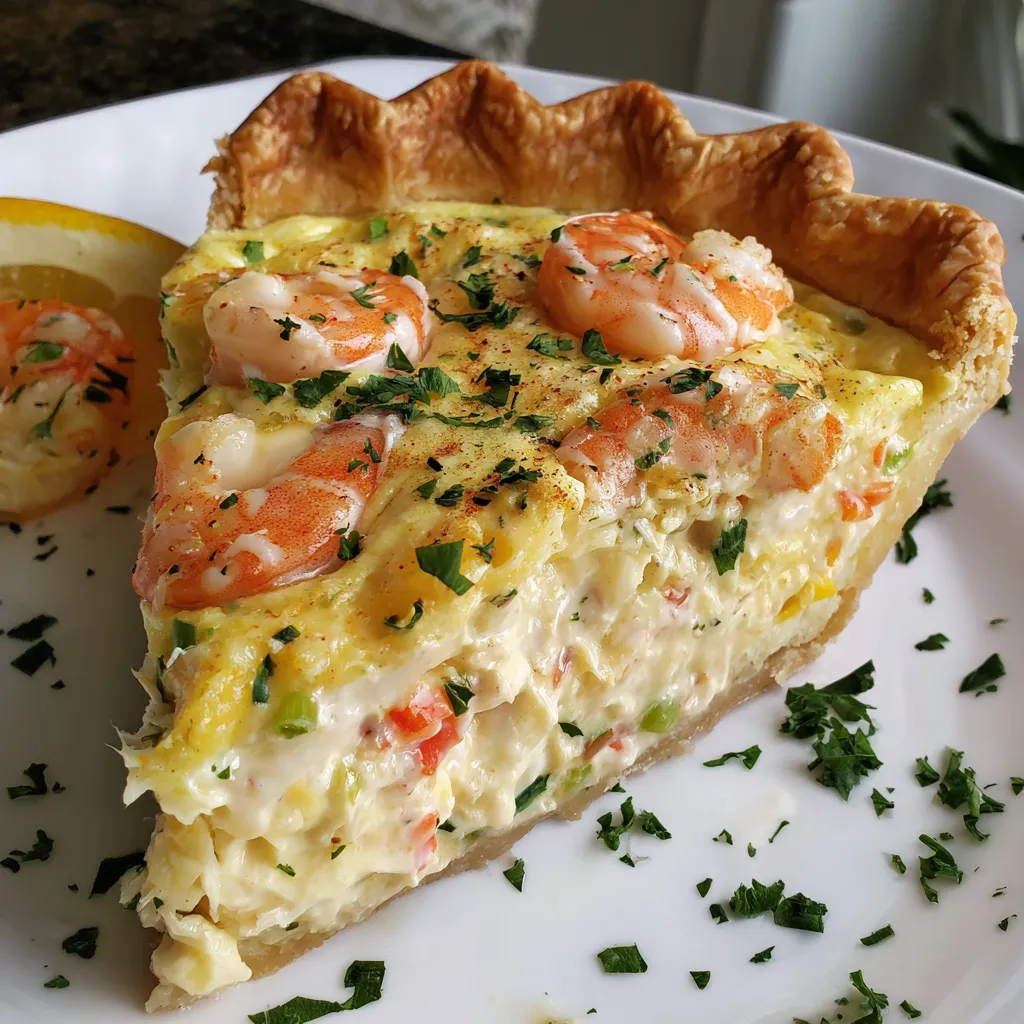 - Pour the creamy shrimp filling into the pre baked pie crust and spread evenly In a bowl combine panko melted butter Parmesan and parsley Scatter this topping over the pie Bake in your preheated oven for twenty five to thirty minutes until the pie is golden brown and the filling is bubbling Let the pie rest for at least five minutes before slicing so it sets up