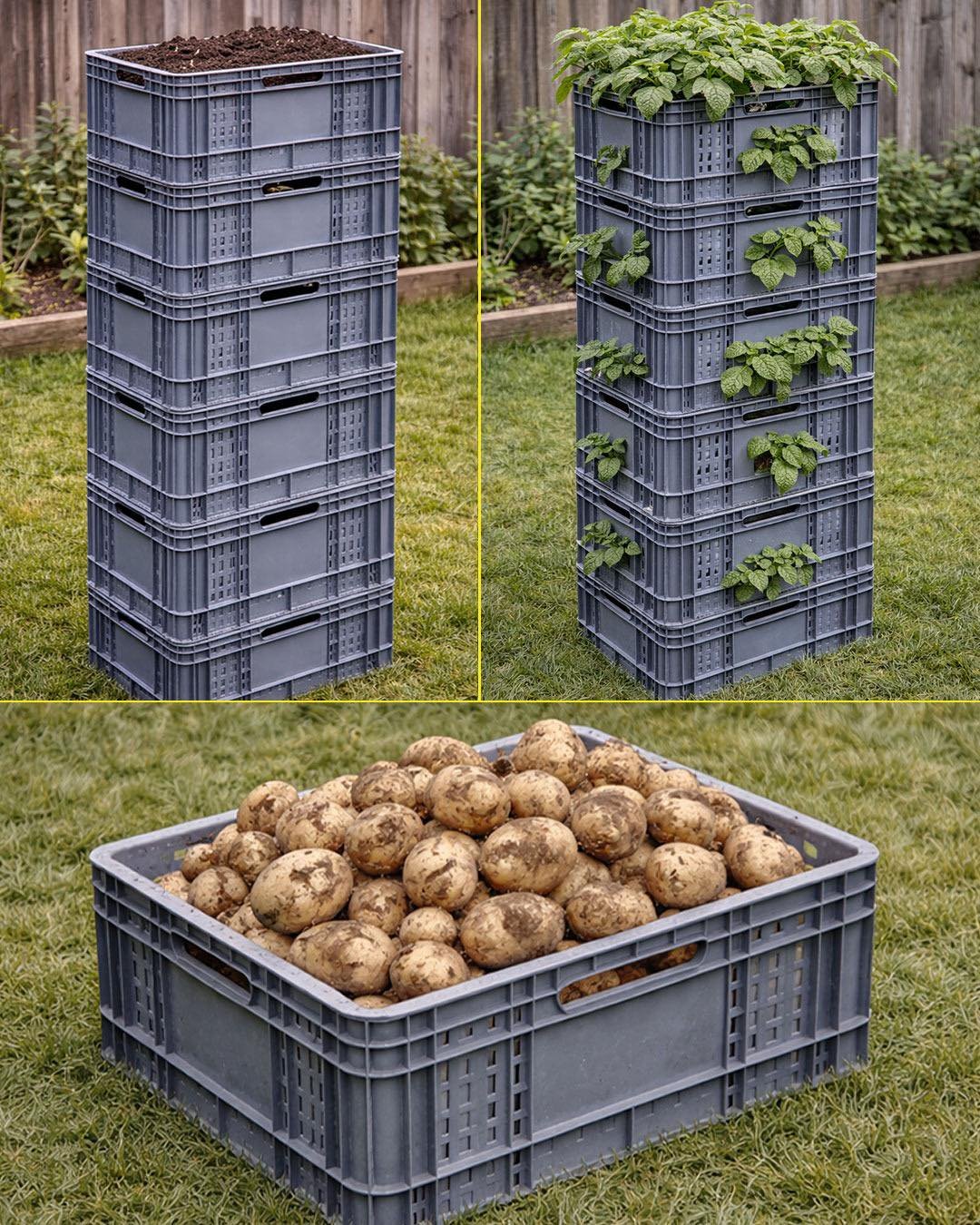 Growing potatoes at home doesn’t require a large garden. With a simple crate potato tower, you can grow a surprisingly large harvest in a very small space. This vertical gardening method allows potatoes to grow upward instead of spreading across your yard, making it perfect for small gardens, patios, or urban spaces.