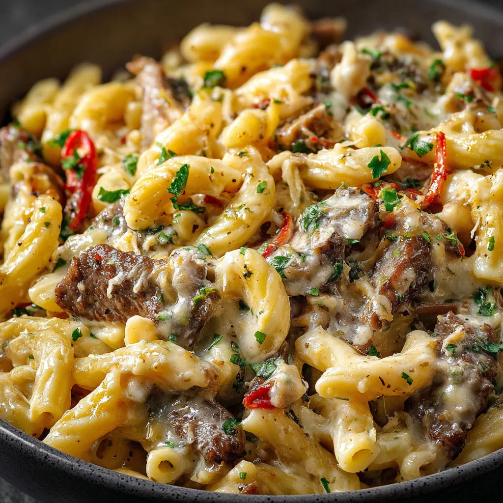My favorite thing about this pasta is always the cheese blend. Provolone gives you that authentic Philly cheesesteak bite and mozzarella keeps everything gooey. The first time I made it my son wanted it the next night too because it was as fun as pizza but more filling. It makes every dinner table feel special.