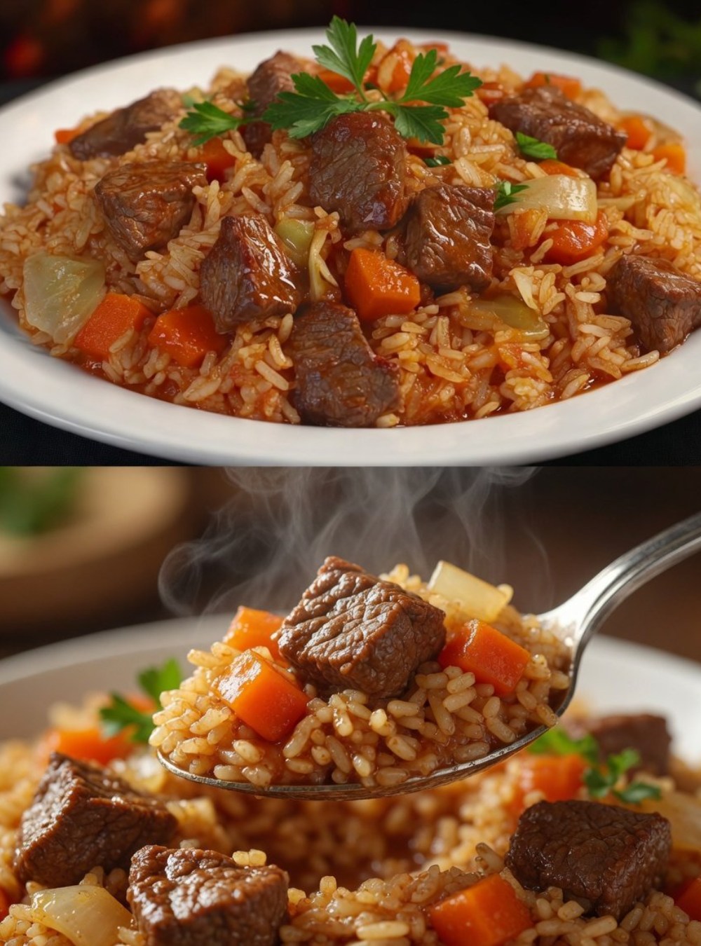 - Pour in an additional cup (240 ml) of beef broth if needed (you may adjust based on rice type). Cover the pot and reduce the heat to low. Cook for about 20 minutes or until the rice is tender and has absorbed the liquid.