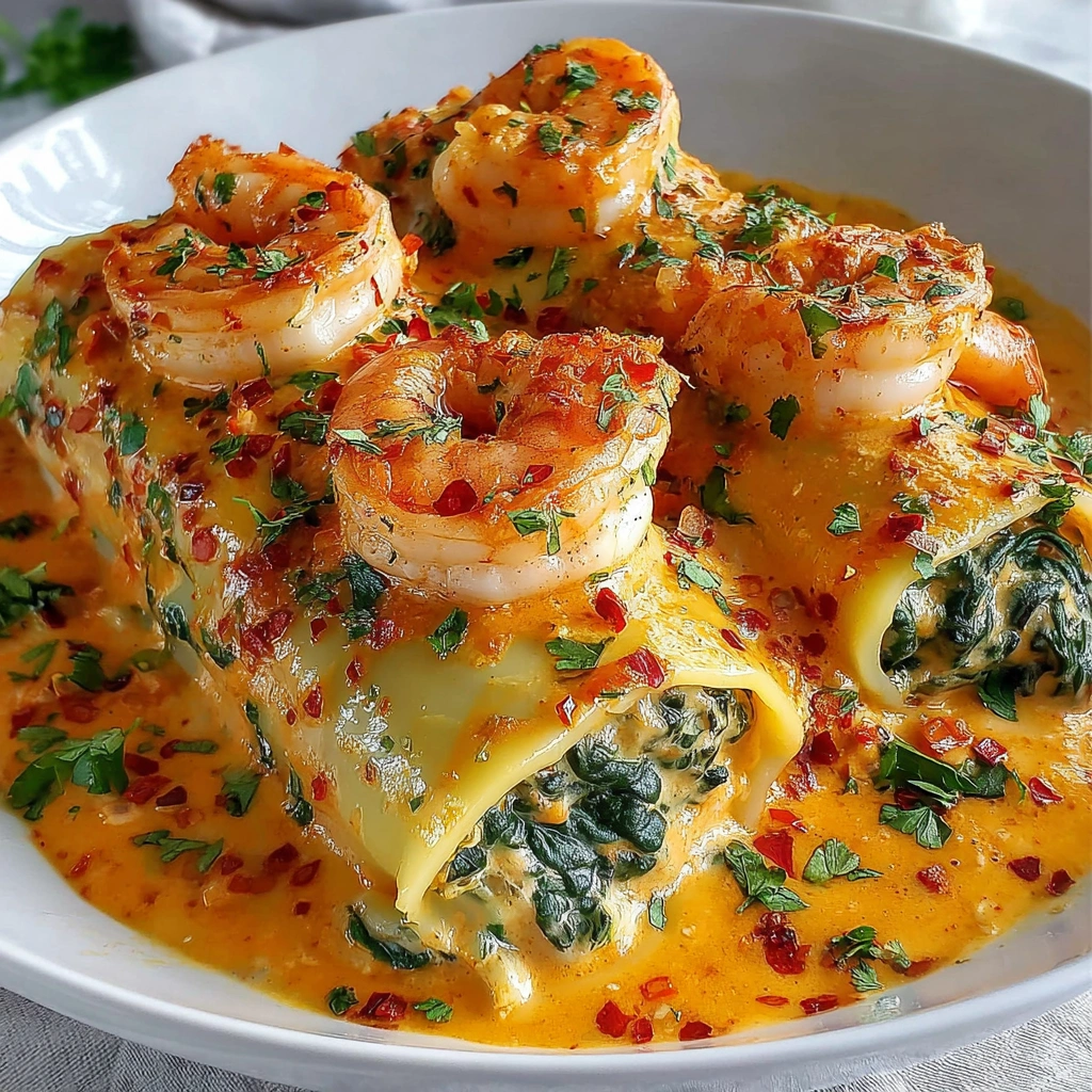 Shrimp & Spinach Pasta Rolls