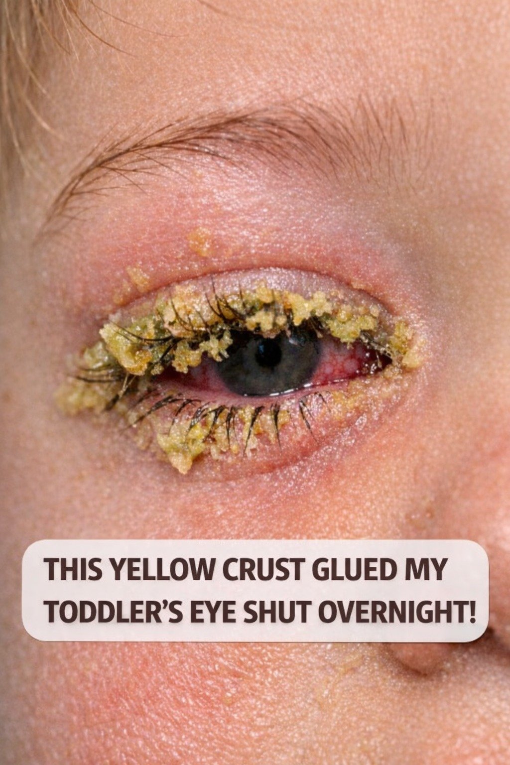 Waking up to find your toddler’s eye completely glued shut with yellow discharge can be scary for any parent. Many children wake up crying because the crust makes it difficult to open their eyes.